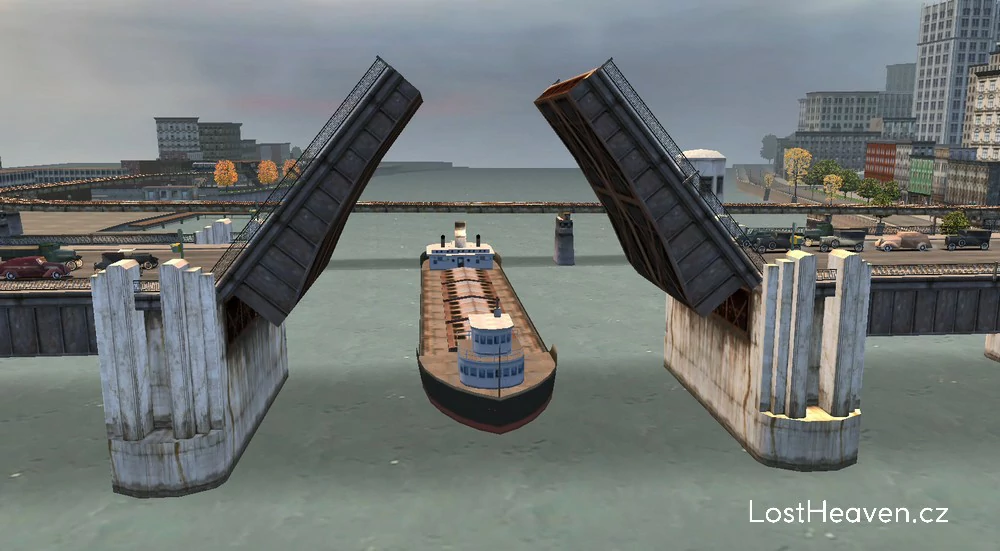 někde v misi, když se to zrovna hodí, ale je to zcela náhodný úkaz, který je závislý na zmíněné lodi. Jakmile loď připlouvá, prostřední část mostů ze začne zvedat, auta na mostě zastaví a nechybí ani výstražná signalizacce, která nejenže v případě zvedání mostu červeně bliká, ale i cinká podobně jako to známe ze železničních přejezdů.
