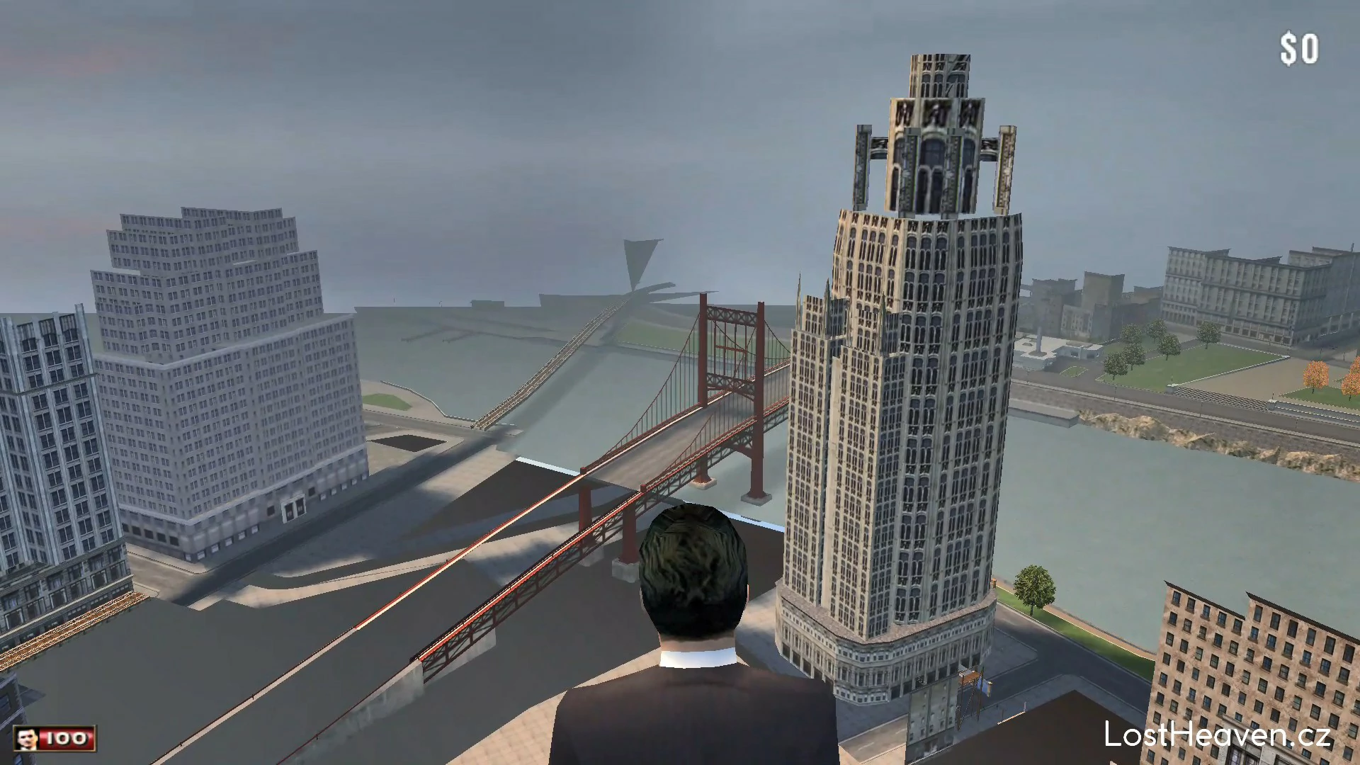 Tato šedobílá výšková budova je pouhou kulisou. Nemá žádný interiér