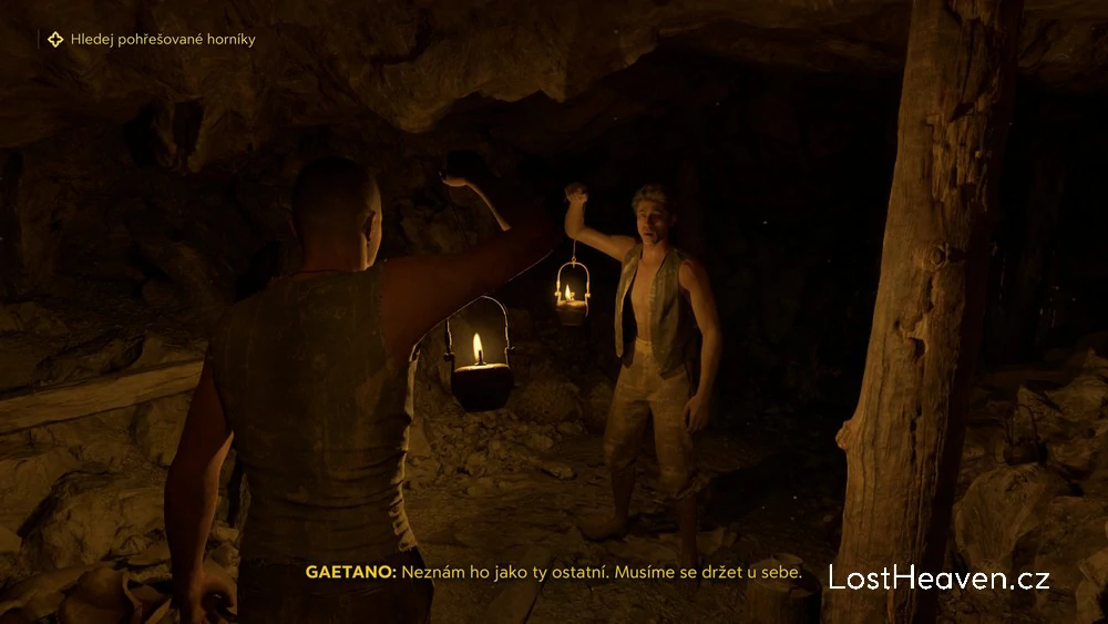 z horníků a díky petrolejce, kterou držíme v ruce, zjistíme,