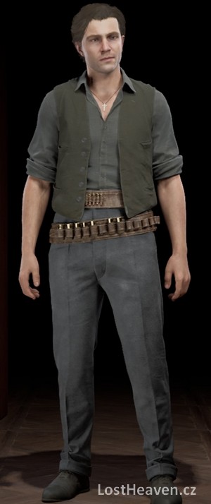 Pistolero - slonovinově šedozelená Cena: 500 dinari Přístupnost: Nutno zakoupit Kostým do akce. |