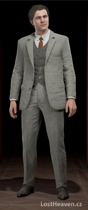 Sváteční - cínově šedá Cena: 500 dinari Přístupnost: Nutno zakoupit Oblek určený především pro společenské události. |