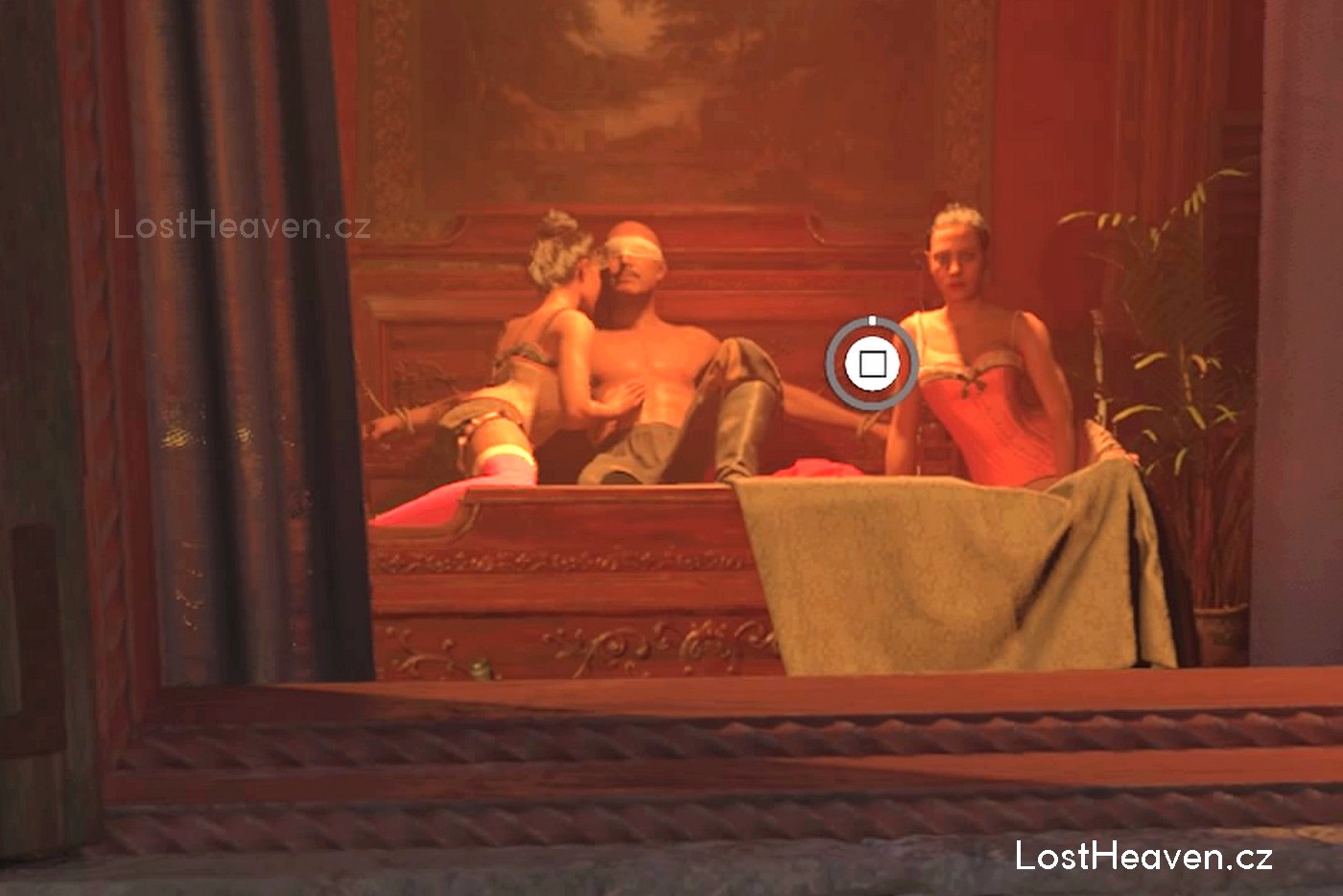 vyfotit, jak si v nevěstinci v San Celeste užívá s prostitutkami,